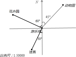 花卉园在游乐场北偏西60°方向,