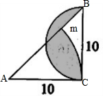 ②观察图形可知,阴影部分的面积等于图中半圆的面积减去空白处m的面积,由此利用半圆的面积公式求出半圆的面积是,只要再求出空白处m的面积即可解答;因为三角形ABC是等腰直角三角形,所以∠A=45°,则空白处m的面积=三角形ABC的面积-圆心角是45°,半径是10厘米的扇形的面积,由此利用三角形和扇形的面积公式即可解答