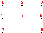 分析:观察图形可知,把这8个点分别标上序号1、2、3、4、5、6、7、8;从8个点中选出1和另外2个点有:123、124、125、126、127、128、134、135、136、137、138、145、146、147、148、156、157、158、167、168、178,21种选法,其中123、147、158在一条直线上,不能组成三角形,所以与1点连接能组成的三角形有18个;