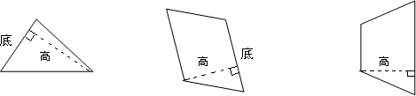 分析:三角形底边上的高只能画一条,由三角形的顶角向底边做垂线即可.平行四边形底边上的高可以画两条,从平行四边形的左上角向底边做垂线.也可以把底边向右延长,从平行四边形的右上角,向延长的底边上做垂线(垂线做在外面).梯形的高可以做两条,分别从两个顶角向底边作垂线即可.