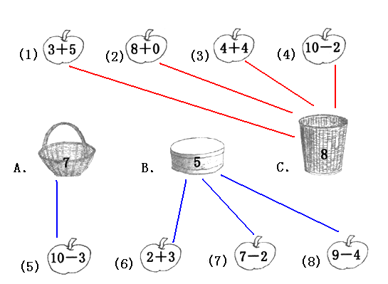下面的苹果应该放在哪个篮子里?