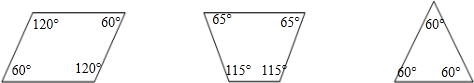 故答案为:60°、120°;65°、115°;60°、60°.
