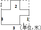 米.分析:如图,把这个图形的三个角处补充上三个小正方形,可得:原来图形的周长正好是这个组合成的以3+2=5米和3+1=4米为边长的长方形的周长,由此利用长方形的周长公式即可解答.