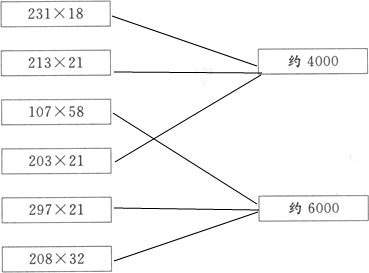 运用估算:把非整十整百的数看作整十整百的数相乘估算出每一题的计算结果,然后连线即可.