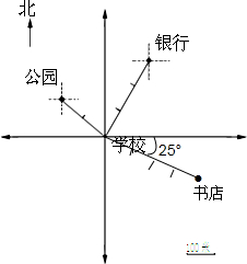 (3)书店在银行东偏南25°的方向上,距离是400米,请画出书店的方向并标出它的位置.