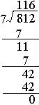 812÷7=