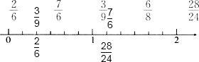 下面哪些分数在数轴上能用同一个点表示?把这些分数在数轴上表示出来o