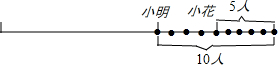 人.分析:一排学生48人,小花顺数是第43名,那么他后面有5人;小明倒数是第10名,也就是小花前面第10-6=4(人)是小明,则小明与小花之间有3人.图示如下: