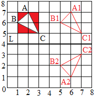 ③在网格纸中作出三角形A1B1C1以直线L为对称轴的轴对称图形,即三角形A2B2C2,并用数对表示顶点A2的位置为:A2(______,______).