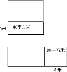 农科院有一块长方形试验田,如果长增加8米,或者宽增加5米,面积都比原来增加80平方米,原来试验田的面积是多少?(先画图,再计算)