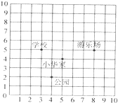 (1)游乐场v位置是(8,5),小华家所在位置是(5,5)