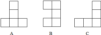 如图三幅图都是由4个完全相同的正方形组成,请你用不同的方法分别在三幅图上添画一个正方形,使它们都成为轴对称图形.
