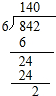 842÷6=140…2