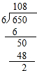 650÷6=108…2