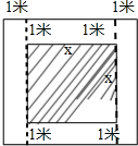 分析:我们把正方形花坛的边长设为x米.然后用x表示出四周1米宽的水泥路的面积,求出正方形花坛的边长,进一步求出正方形的花坛的面积.