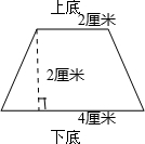 经过测量:上底为2厘米,下底为4厘米,高为2厘米;