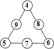 分析:如图设三角形三个顶点的三个数分别为a、b、c,利用每条线上的三个数的和都是18,推出a、b、c的值,进一步得出结论即可.