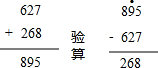 (1)627+268=895,