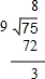 (5)75÷9=8…3,