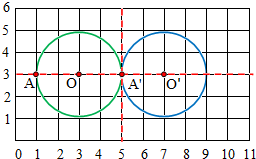 (1)标出点A(1,3)、O(3,3),以O点为圆心,AO的长为半径画圆.