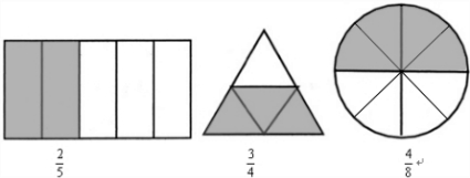 结合图在下面的横线里填上适当的分数.