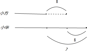 小华给小方8枚邮票后,两人的邮票枚数同样多,如图所示,小华原来比小方多几格邮票,用乘法直接得解.