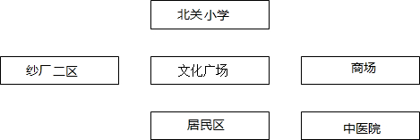 ①文化广场②北边是北关小学③南边是居民区④东边是商场⑤西边是纱厂二区⑥东南是中医院
