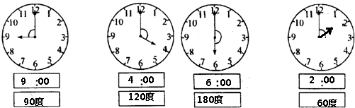 写出每个钟面上的时间,量出时针和分针所成的角度.