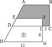 分析:如图所示,阴影部分的面积就等于最下面的梯形①的面积,利用梯形的面积公式即可求解.