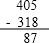 405-318=87