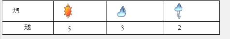 根据图中的晴天,阴天和雨天的情况收集数据,填入统计表中解答.