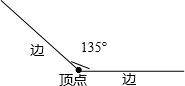 以如图一点0作为角的顶点,画一个135度的角,并标出各部分的名称.