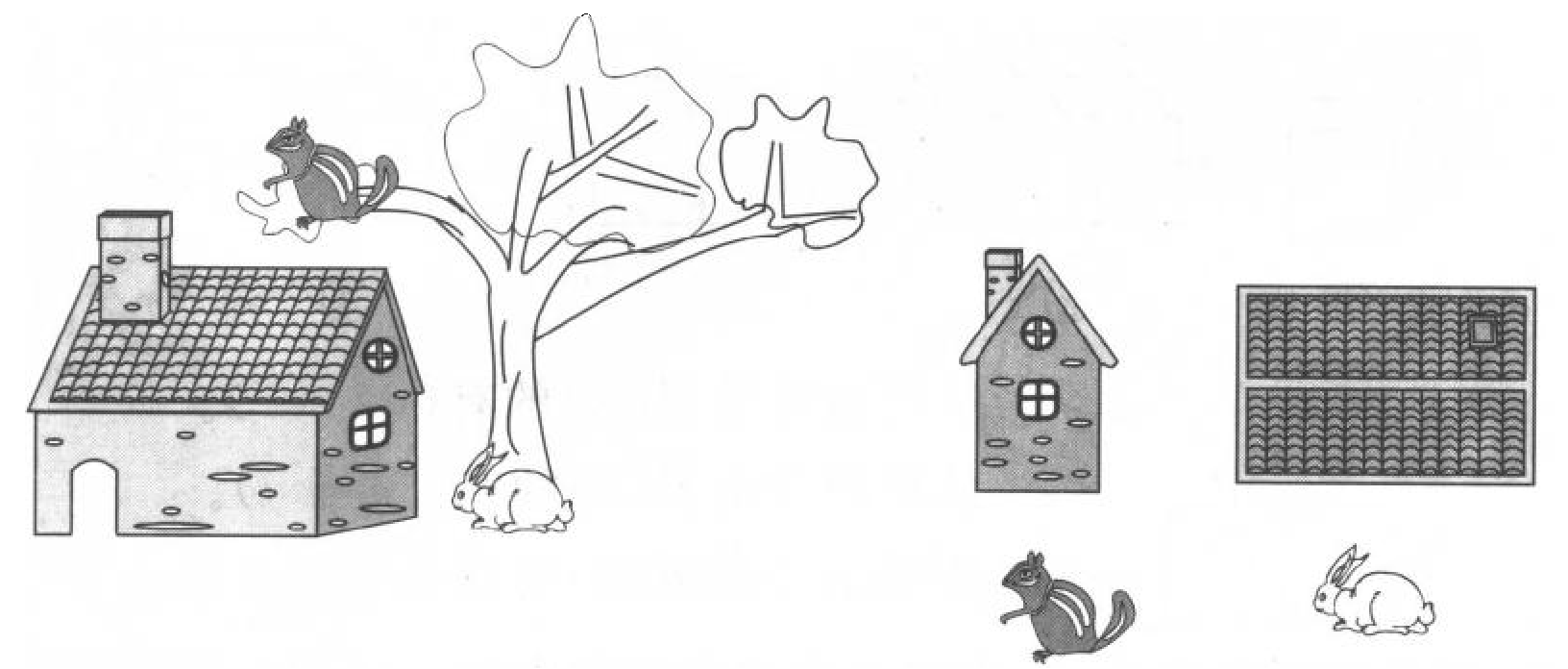 由图可以发现,房子前面的同学看到的有房子的门,右边的同学看到的上面是一个三角形,下面有窗,剩下的一个就是左边的同学看到的,据此即可连线.