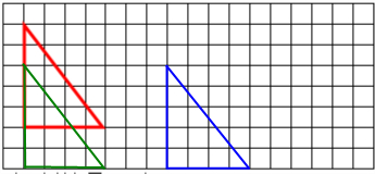 将下面的图形先向下平移2格(绿色部分),再向右平移7格(红色部分):