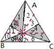分析:过P点分别作三条边的平行线,根据等底等高的三角形面积相等和平行四边形的性质可得甲的面积+乙的面积+丙的面积=正△ABC的面积的一半即可求解.