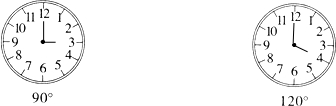 解:90÷30=3(格),90度时针和分钟相差3个大格;