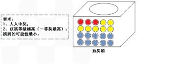 某文具店进行抽奖促销活动(凡在本店购物者均可参加抽奖,每人每次摸一个球)。摸到红色球为一等奖,摸到黄色球为二等奖,摸到蓝色球为三等奖。请你将抽奖箱中的20个球按照下面的要求涂上合适的颜色或标出表示颜色的符号。