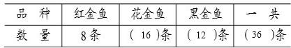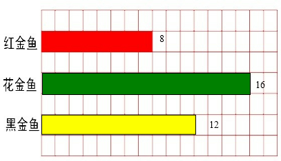 小军养花金鱼的条数是红金鱼的2倍,黑金鱼比花金鱼少4条,在方格纸上画出表示花金鱼和黑金鱼的条数的直条,并填表