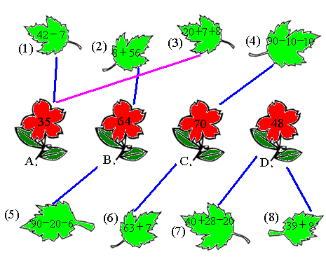 下面的叶子应配在哪朵花上?