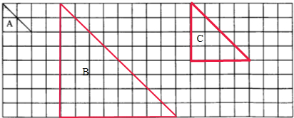 先把三角形A按4:1放大,得到三角形B;再把三角形B按1:2缩小,得到三角形C.