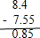 | 8.4-7.55= | 437÷6= | 3564+275= |