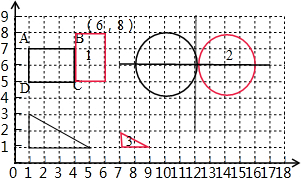 (1)根据旋转的性质,绕点C先将CB与CD边顺时针旋转90°,即可画出这个旋转后的长方形如图1,则旋转后A的位置为:(6,8);