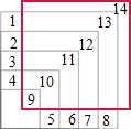如图是由五个边长分别为2、3、4、5、6的正方形组成的图形,请你想一想,若在图上添加一个正方形,图中最多会出现______个正方形.