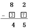 (2)根据竖式可得:被减数是82,差是45,那么减数=被减数-差=82-45=37;