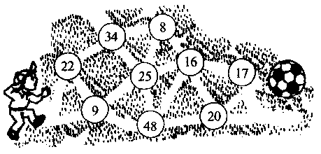 走哪一条路线,才能使所经过各数相加的和在70~80之间.请你用“→”标出来.