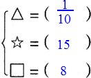 ,即可得到□的值;把正方形的值代入第二个等式,再依据等式性质,求得△的值,最后把△的值代入第一个等式,即可求得五角星的值.