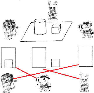 分析:观察图形可知,狮子看到的图形是一个竖着的长方形,右边的图形被完全遮挡;小兔看到的图形是左边一个正方形,右边一个竖着的长方形;小牛看到的图形是一个小正方形和被遮挡住一部分的长方形,据此即可连线.