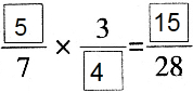 分析:先看分母,由于积的分母是28,如何没有约分,那么第二个因数的分母就是28÷7=4,此时第一个数的分子可以是和7、4分别互质的任意数;