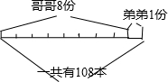 哥哥和弟弟共108个本子,哥哥是弟弟的8倍,哥哥和弟弟各有多少个本子?(提示:画线段图帮助分析).