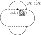 由四个相等的半圆围成一个最大的花坛,周长是125.6米,请你用适当的比例尺画出这个花坛的平面图,并标上半圆直径的实际长度和比例尺.(把图画在右面)